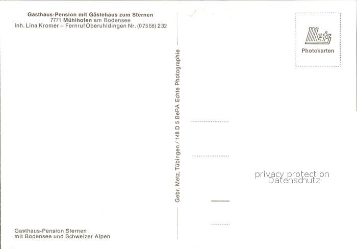 41784635 Muehlhofen Uhldingen-Muehlhofen Gasthaus Pension Gaestehaus zum Sternen Bodensee Schweizer Alpen postalisch nicht gelaufen Erhaltung siehe scans KatCode: 11110008435066