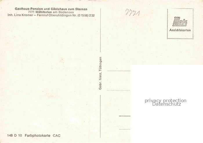74104138 Muehlhofen Uhldingen-Muehlhofen Gasthaus Pension Gaestehaus zum Sternen postalisch nicht gelaufen Erhaltung siehe scans [FriedD77] Frie Katcode 11110008435066