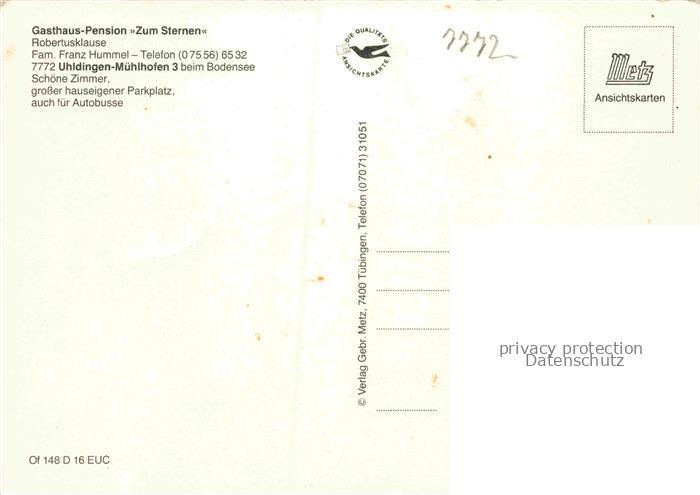 74104071 Muehlhofen Uhldingen-Muehlhofen Gasthaus Pension zum Sternen Terrasse postalisch nicht gelaufen Erhaltung siehe scans [FriedD77] Frie Katcode 11110008435066