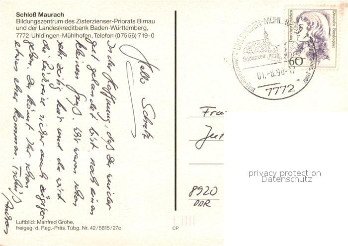73636116 alte Postkarte Muehlhofen Uhldingen-Muehlhofen Schloss Maurach Fliegeraufnahme postalisch gelaufen Erhaltung siehe scans [FriedD77] KatCode: 11110008435066