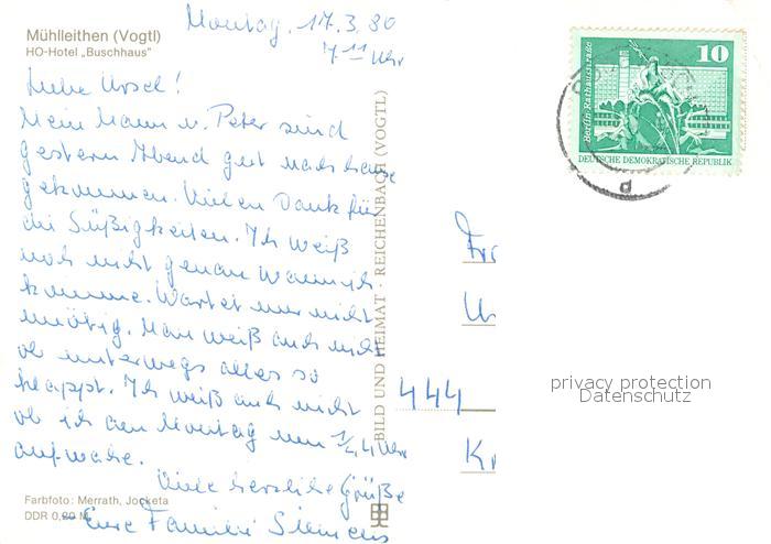 73685326 alte Postkarte Muehlleiten Vogtland HO Hotel Buschhaus postalisch gelaufen Erhaltung siehe scans [WerneD78] KatCode: 11110014178250