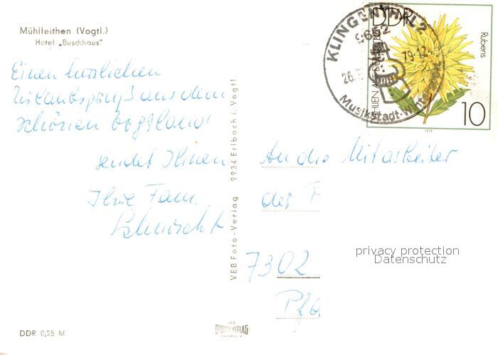 73739491 alte Postkarte Muehlleiten Vogtland Hotel Buschhaus Gastraeume Panorama postalisch gelaufen Erhaltung siehe scans [FriedD77] KatCode: 11110014178250
