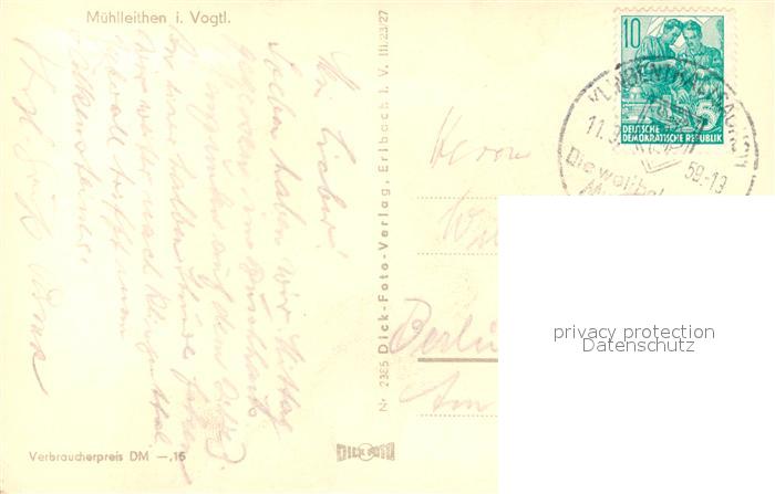 43495777 alte Postkarte Muehlleiten Vogtland Panorama postalisch gelaufen Erhaltung siehe scans [WerneD78] KatCode: 11110014178250