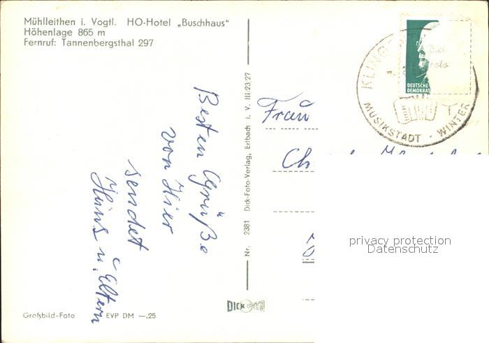 72326160 alte Postkarte Muehlleithen Klingenthal HO-Hotel Buschhaus postalisch gelaufen Erhaltung siehe scans KatCode: 11110014178250