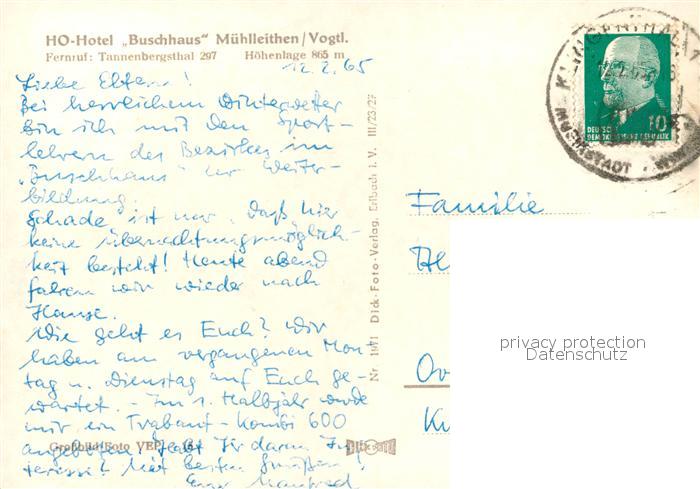 73038058 alte Postkarte Muehlleithen Klingenthal HO Hotel Buschhaus Winter postalisch gelaufen Erhaltung siehe scans [KathaD81] KatCode: 11110014178250