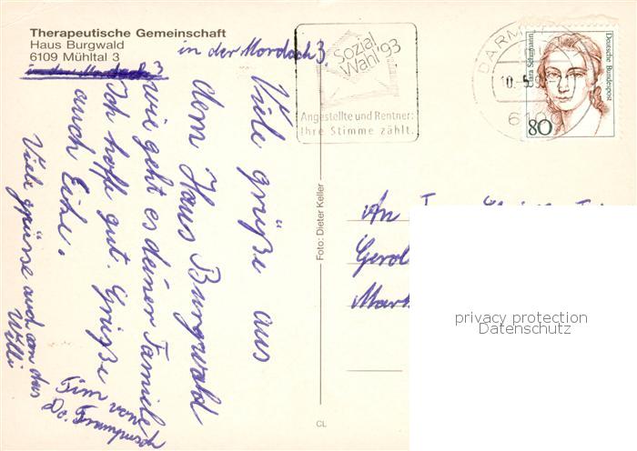 73863214 alte Postkarte Muehltal Hessen Therapeutische Gemeinschaft Haus Burgwald postalisch gelaufen Erhaltung siehe scans [WerneD78] KatCode: 11110006432014