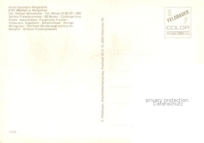 73653155 Muehltal Mangfalltal Gaststaette Weiglmuehle Bruecke Stauwehr Gastraum postalisch nicht gelaufen Erhaltung siehe scans [WerneD78] KatCode: 11110009182137