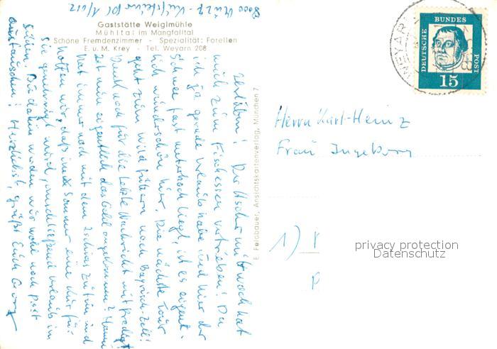 73643341 alte Postkarte Muehltal Mangfalltal Gaststaette Weiglmuehle postalisch gelaufen Erhaltung siehe scans [WerneD78] KatCode: 11110009182137