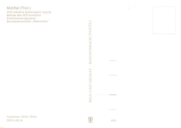 73938607 Muehltal Thueringen Freibad Betrieb des VEB Kombinat Kraftwerksanlagenbau Betriebsferienheim Walkmuehle postalisch nicht gelaufen Erhaltung siehe scans [WerneD78] KatCode: 11110016051000