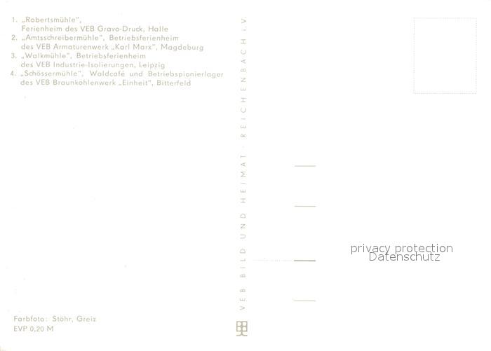 73034254 Muehltal Thueringen Robertsmuehle Amtsschreibermuehle Walkmuehle Schoessermuehle postalisch nicht gelaufen Erhaltung siehe scans [PaolaD17] KatCode: 11110016051000