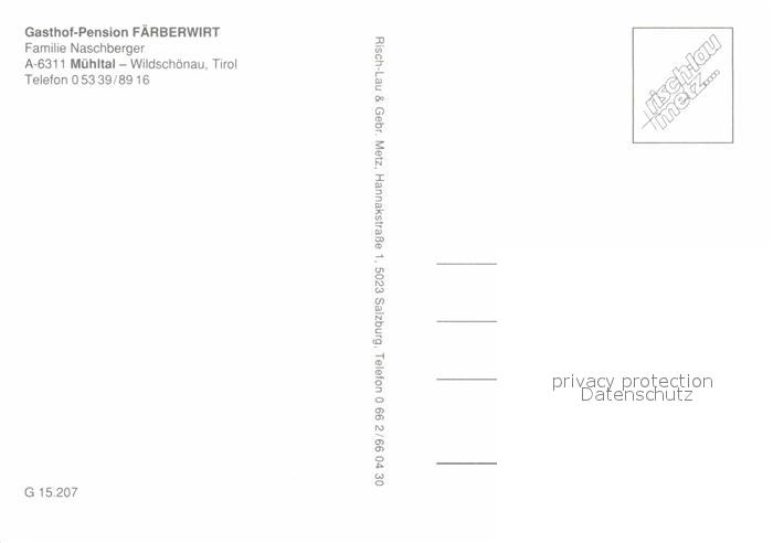 12637448 Muehltal Wildschoenau Gasthaus Pension Faerberwirt postalisch nicht gelaufen Erhaltung siehe scans [LiesaD40] KatCode: 11390335070530