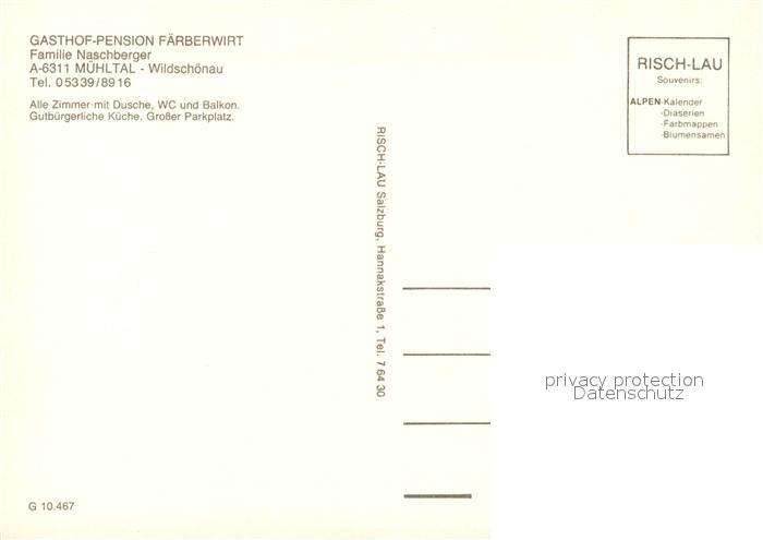 73328001 Muehltal Wildschoenau Gasthof Pension Faerberwirt postalisch nicht gelaufen Erhaltung siehe scans [FriedD77] KatCode: 11390335070530