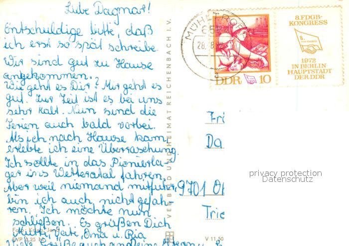 73565446 alte Postkarte Muehltroff Schloss Polytechnische Oberschule Berufsschule Hauptstrasse Gasthaus Zur goldenen Sonne postalisch gelaufen Erhaltung siehe scans [FriedD77] KatCode: 11110014178380