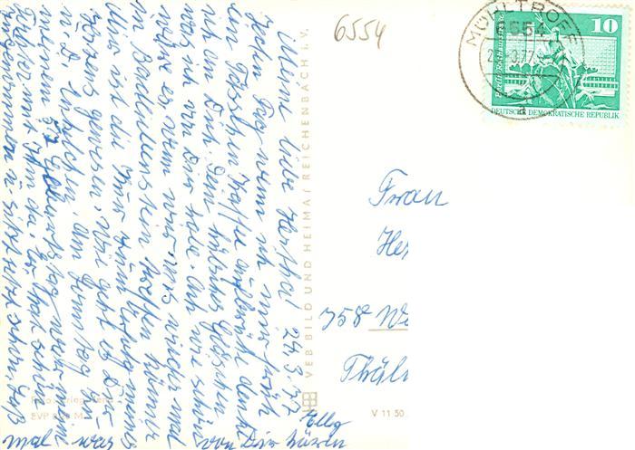 73907937 alte Postkarte Muehltroff Schloss Wohngebaeude Polytechn Oberschule Berufsschule Hauptstrasse und Gasthaus Zur goldenen Sonne postalisch gelaufen Erhaltung siehe scans [FriedD77] KatCode: 11110014178380