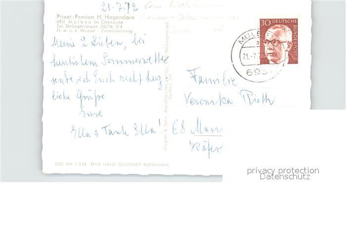 72533023 alte Postkarte Muelben Privat Pension Hagendorn postalisch gelaufen Erhaltung siehe scans [LiesaD40 kt094box] KatCode: 11110008225118