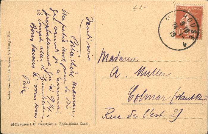 11442823 Muelhausen Elsass Hauptpost Rhein Rhone Kanal Boot Kahn Schwan KatCode 11170068468224