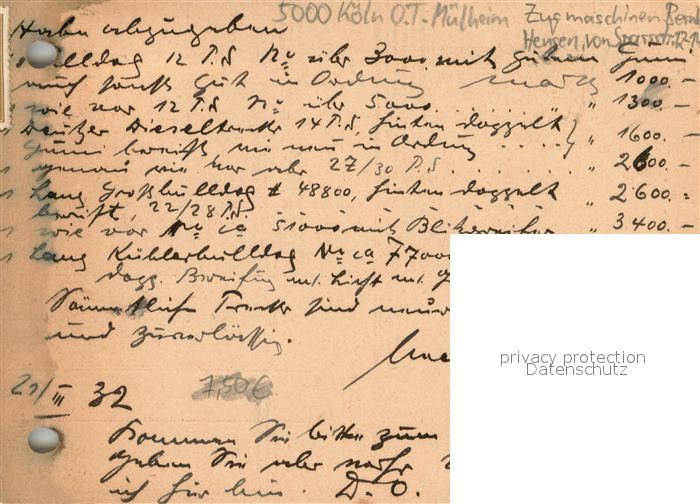 73690863 alte Postkarte Muelheim Koeln Bernhard Hensen Zugmaschinen fuer Industrie ud Landwirtschaft postalisch gelaufen Erhaltung siehe scans [WerneD78] KatCode: 11110005315000