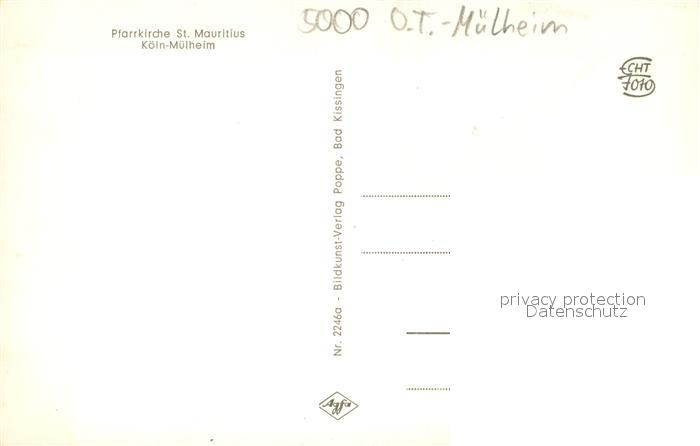 73690513 Muelheim Koeln Pfarrkirche St Mauritius postalisch nicht gelaufen Erhaltung siehe scans [WerneD78] KatCode: 11110005315000