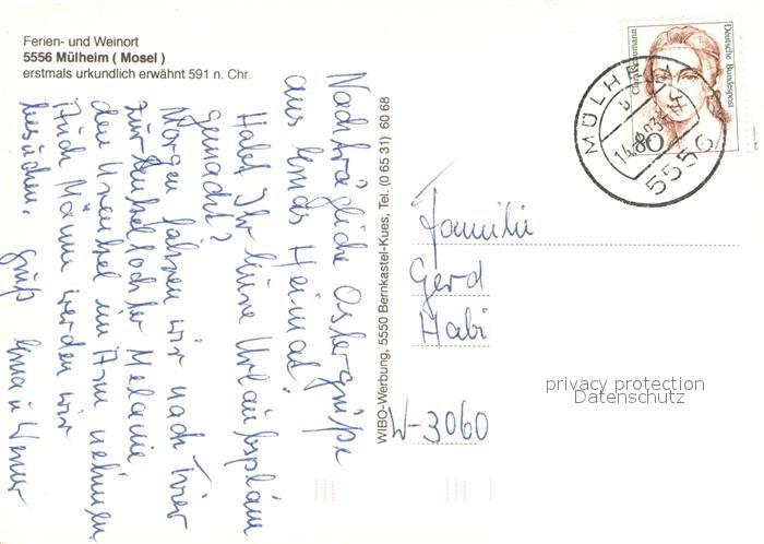 73671920 alte Postkarte Muelheim Mosel Fliegeraufnahmen Campingplatz Fachwerkhaeuser postalisch gelaufen Erhaltung siehe scans [WerneD78] KatCode: 11110007231090