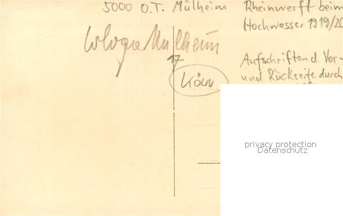 33701286 Muelheim Rhein Rheinwerft beim Hochwasser 1919 postalisch nicht gelaufen Erhaltung siehe scans [WerneD78] KatCode: 11110005315000