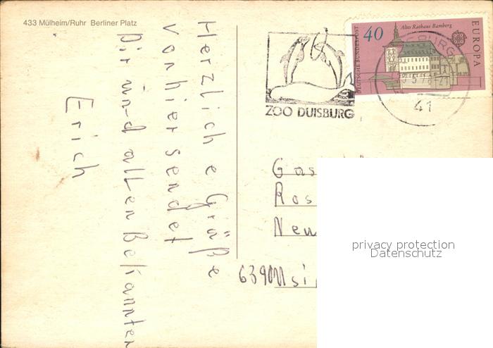 72461278 alte Postkarte Muelheim Ruhr Berliner Platz Kirche postalisch gelaufen Erhaltung siehe scans KatCode: 11110005117000
