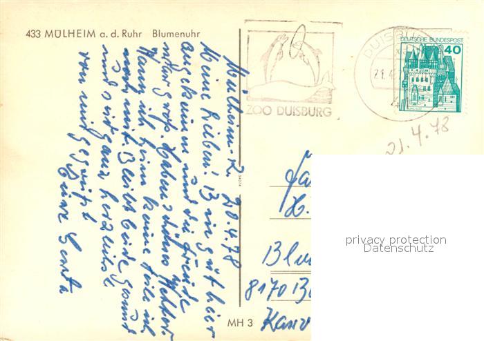 73144891 alte Postkarte Muelheim Ruhr Blumenuhr Wasserbahnhof postalisch gelaufen Erhaltung siehe scans [FriedD77] KatCode: 11110005117000