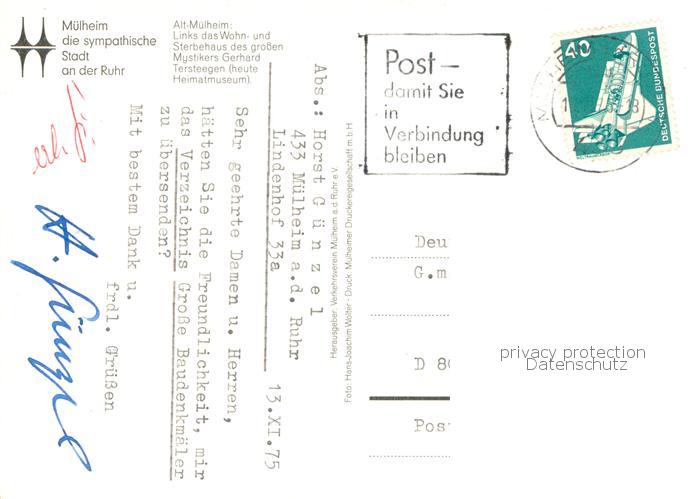 73777876 alte Postkarte Muelheim Ruhr Heimatmuseum postalisch gelaufen Erhaltung siehe scans [WerneD78] KatCode: 11110005117000