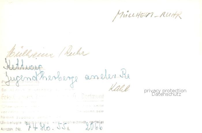73831918 Muelheim Ruhr Jugendherberge an der Ruhr postalisch nicht gelaufen Verlagsrohabzug (keine Postkartenrückseite) Erhaltung siehe scans [WerneD78] KatCode: 11110005117000