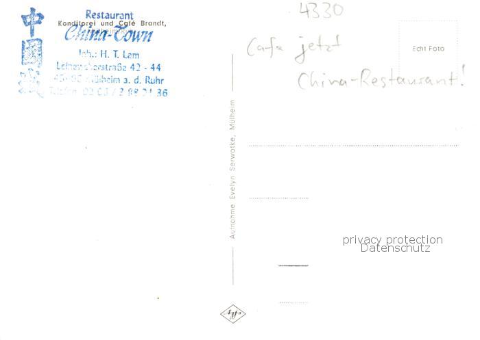 73857920 Muelheim Ruhr Konditorei Cafe Brandt Restaurant China Town postalisch nicht gelaufen Erhaltung siehe scans [FriedD77] KatCode: 11110005117000
