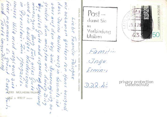 74153790 alte Postkarte MueLHEIM RUHR NRW Blumenuhr City-Center Wasserbahnhof Stadthalle City Schlosstrasse Berliner Platz postalisch gelaufen Erhaltung siehe scans [FriedD77] KatCode: 11110005117000