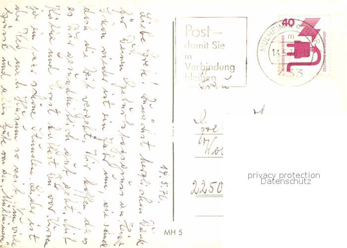 72742192 alte Postkarte Muelheim Ruhr Schlossbruecke Stadtmitte Wasserbahnhof Blumenuhr Wappen postalisch gelaufen Erhaltung siehe scans [FriedD77] KatCode: 11110005117000