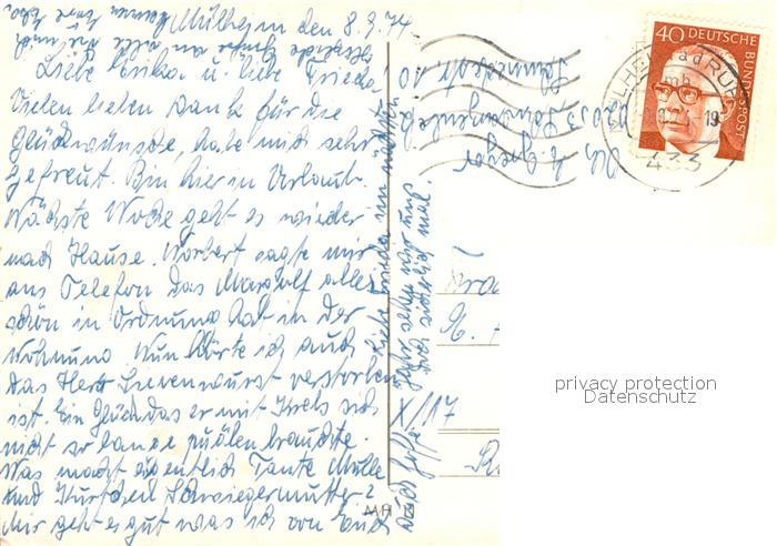 73071939 alte Postkarte Muelheim Ruhr Stadthalle Schlossstrasse Stadtmitte Blumenuhr Wasserbahnhof Busch Schlossbruecke postalisch gelaufen Erhaltung siehe scans [FriedD77] KatCode: 11110005117000