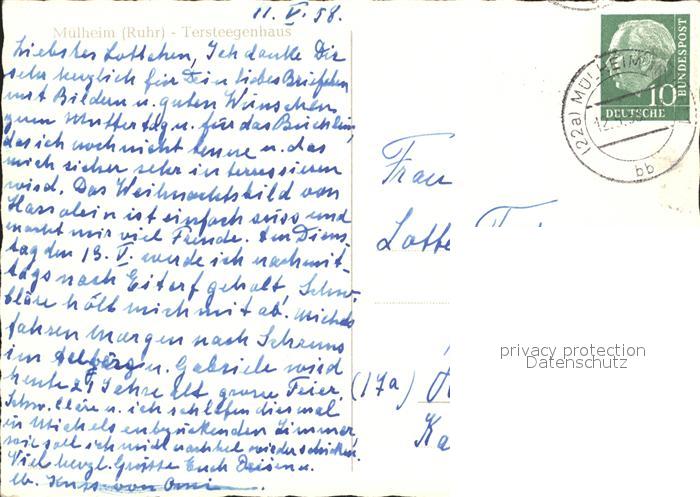 72097852 alte Postkarte Muelheim Ruhr Tersteegenhaus postalisch gelaufen Erhaltung siehe scans KatCode: 11110005117000