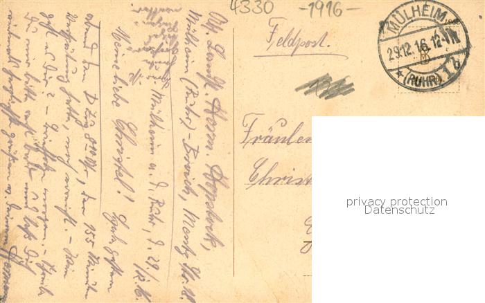 73709555 alte Postkarte Muelheim Ruhr Walkmuehle Feldpost postalisch gelaufen Erhaltung siehe scans [LiesaD40] KatCode: 11110005117000