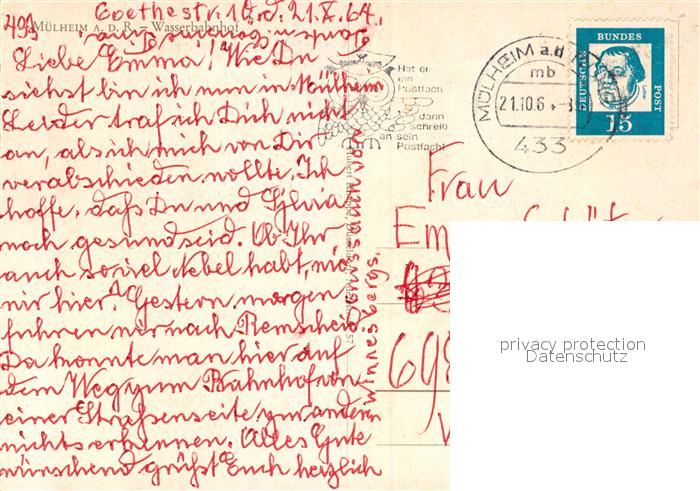 73170604 alte Postkarte Muelheim Ruhr Wasserbahnhof postalisch gelaufen Erhaltung siehe scans [PaolaD17] KatCode: 11110005117000