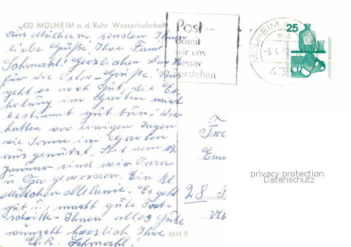 72796858 alte Postkarte Muelheim Ruhr Wasserbahnhof postalisch gelaufen Erhaltung siehe scans [KathaD81] KatCode: 11110005117000