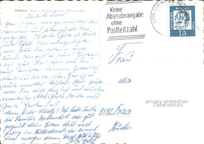 72177522 alte Postkarte Muelheim Ruhr Witthausbusch Parkanlagen postalisch gelaufen Erhaltung siehe scans KatCode: 11110005117000