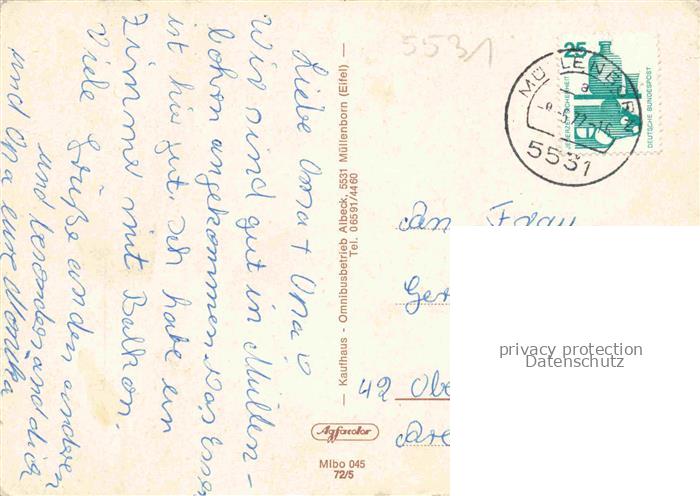 74055206 alte Postkarte Muellenborn Fliegeraufnahme Wohnhaus Park Fontaene postalisch gelaufen Erhaltung siehe scans [WerneD78] KatCode: 11110007233026