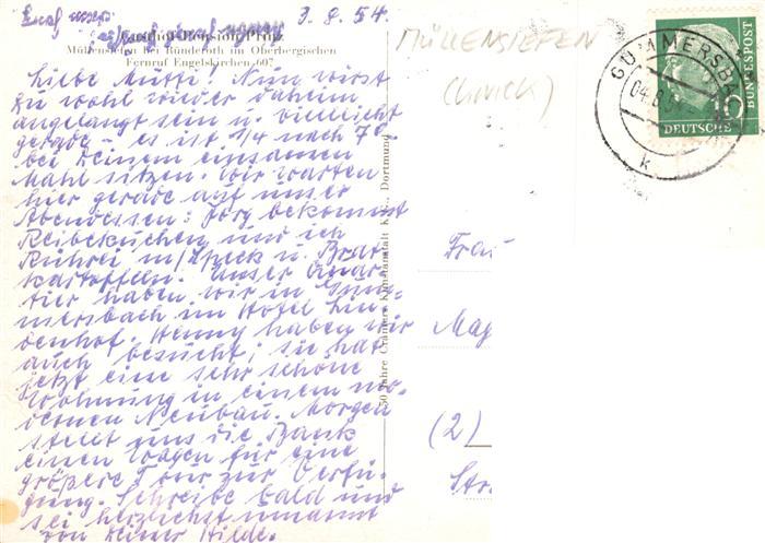 73878202 alte Postkarte Muellensiefen Engelskirchen Gasthof Pension Prinz postalisch gelaufen Erhaltung siehe scans [FriedD77] KatCode: 11110005374008