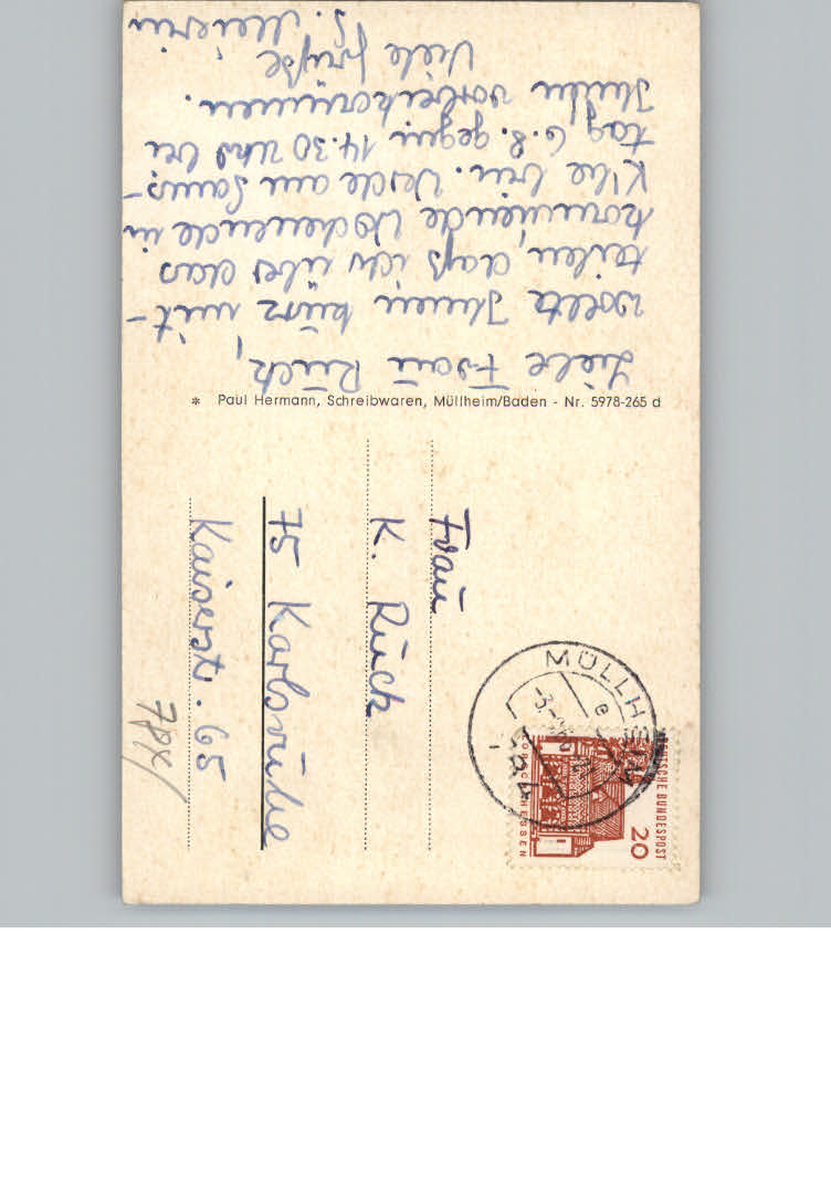 31153252 Muellheim Baden postalisch nicht gelaufen KatCode: 11110008315074