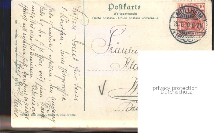 41995960 alte Postkarte Muellheim Baden Alte Post postalisch gelaufen Erhaltung siehe scans KatCode: 11110008315074