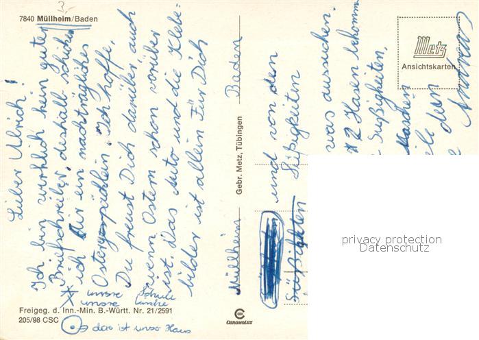 73779356 alte Postkarte Muellheim Baden Fliegeraufnahme postalisch gelaufen Erhaltung siehe scans [WerneD78] KatCode: 11110008315074