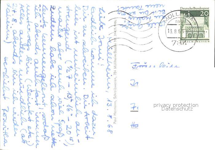 71830876 alte Postkarte Muellheim Baden Hochblauen postalisch gelaufen Erhaltung siehe scans KatCode: 11110008315074