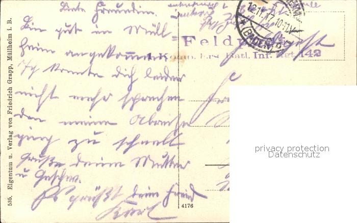 31910372 alte Postkarte Muellheim Baden Infanterie-Kaserne postalisch gelaufen KatCode: 11110008315074