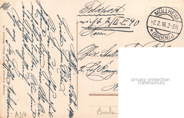 43510506 alte Postkarte Muellheim Baden Ortsansicht mit Kirche Schwarzwald postalisch gelaufen Feldpostkarte Erhaltung siehe scans [FriedD77] KatCode: 11110008315074