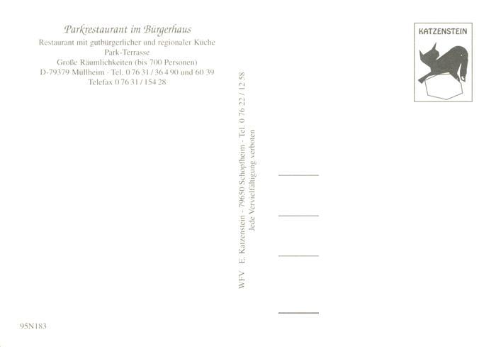 73900601 Muellheim Baden Parkrestaurant im Buergerhaus Gastraeume postalisch nicht gelaufen Erhaltung siehe scans [WerneD78] KatCode: 11110008315074