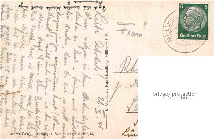 72794983 alte Postkarte Muellheim Baden Teilansicht mit Kirche und Hochblauen postalisch gelaufen Erhaltung siehe scans [AndreD76] KatCode: 11110008315074