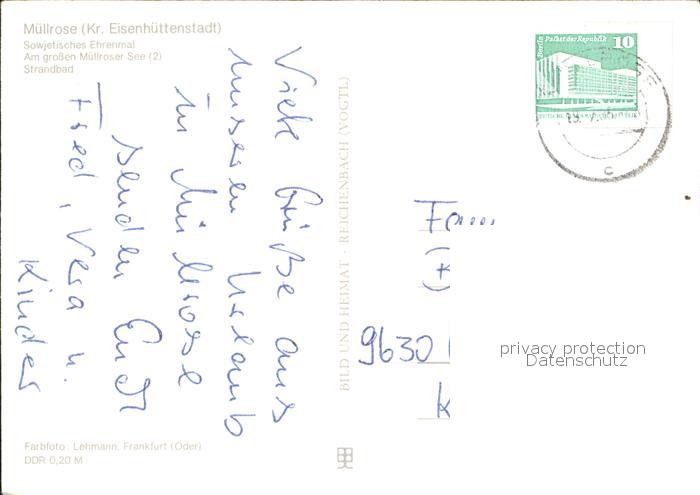 72373133 alte Postkarte Muellrose Sowjetisches Ehrenmal Muellroser See Strandbad postalisch gelaufen Erhaltung siehe scans KatCode: 11110012067336