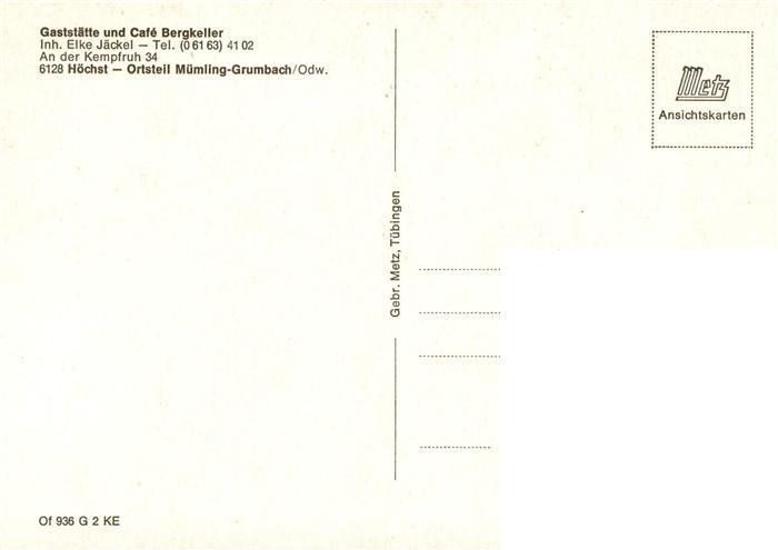 73884378 Muemling-Grumbach Odenwald Gaststaette und Cafe Bergkeller postalisch nicht gelaufen Erhaltung siehe scans [FriedD77] KatCode: 11110006437009