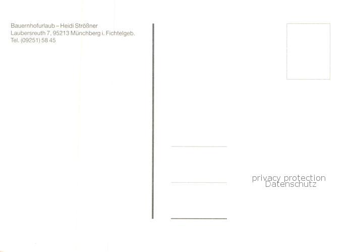 73785788 Muenchberg Oberfranken Bauernhofurlaub Heidi Stroessner postalisch nicht gelaufen Erhaltung siehe scans [WerneD78] KatCode: 11110009475154